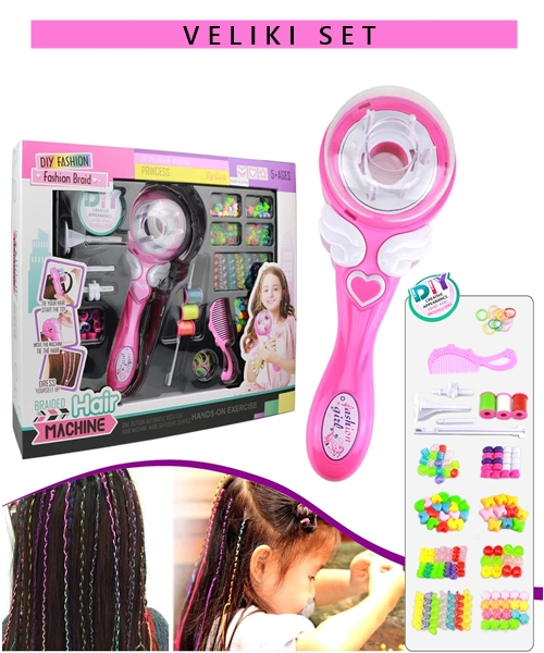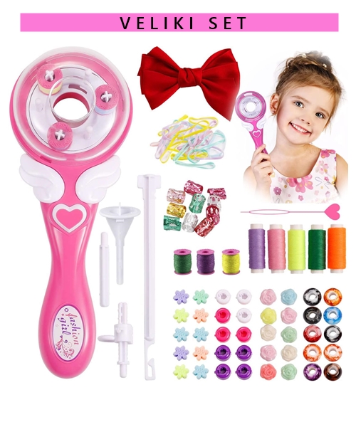 Savršen poklon za devojčice koje žele uredne raznobojne kikice uz negu kose i razvijanje veština pravljenja frizure. Set sadrži aparat za pletenje kikica, mnoštvo šarenih gumica i kanapa uz prateću opremu. Komplet za kikice koji će devojčice obožavati.