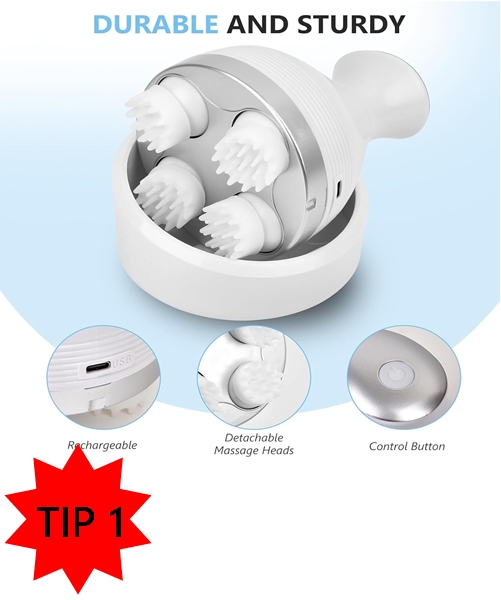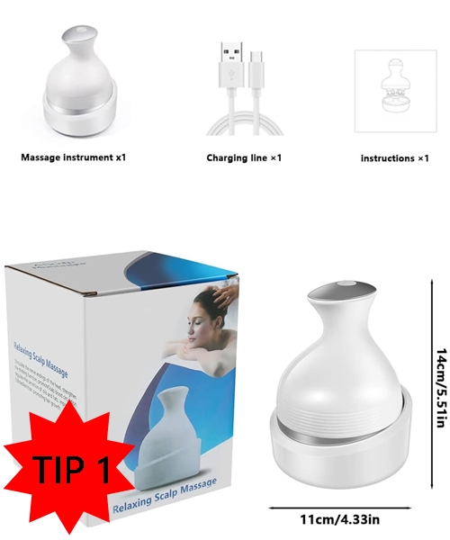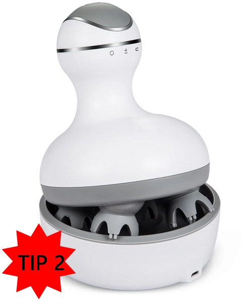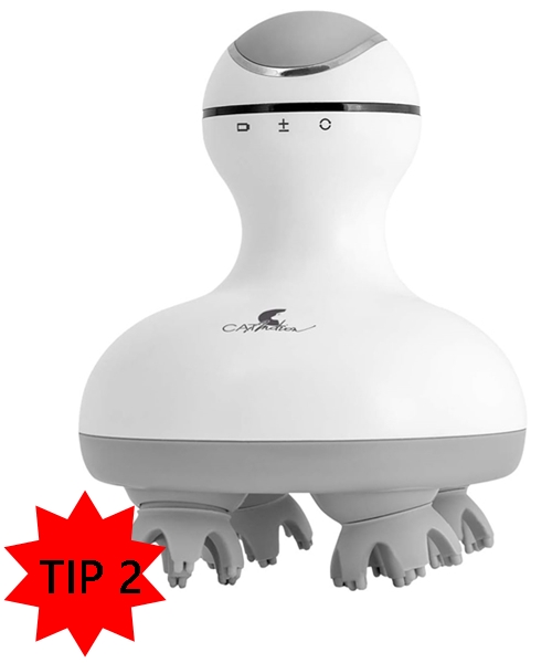 Punjivi ručni masažer za glavu. Sa četiri silikonske rotirajuće glave prodire kroz kosu i pruža opuštanje skalpa i mišića lica. Može se kvasiti i koristiti i na mokroj kosi i pomaže njeno temeljno pranje. Simulira masažu ljudske ruke. Blagotvorno deluje na koren kose i stimuliše rast i regeneraciju. U ponudi su dva tipa masažera.