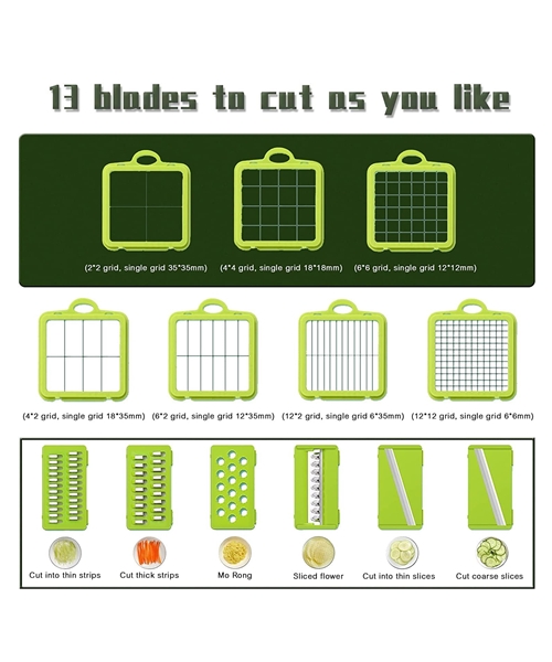 Seckalica za povrće i voće 22-u-1 sa 13 zamjenjivih noževa omogućava brzo i lako pripremanje hrane. Izdržljive noževe i jednostavno čišćenje čine je savršenim kuhinjskim pomoćnikom. Ručni secko idealan za sečenje, rendanje i usitnjavanje, štedi vreme i trud pri pripremi obroka.