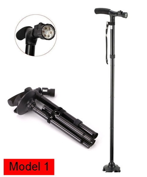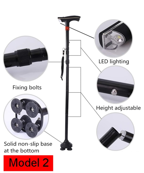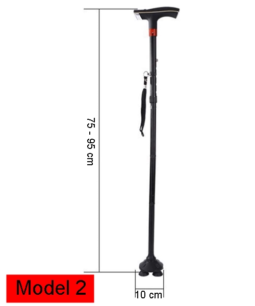 Ortopedski štap za hodanje sa ugrađenim LED svetlom na baterije od 1,5V AAA oznake. Teleskopski podesiv po visini i lako se sklapa. Raspoložive visine od 75 do 95cm. 4 protivklizajuće stope sa precnikom od oko 10 cm. Idealno za pomoć pri hodanju kod starijih osoba, lako sa sklapanje i transport.
