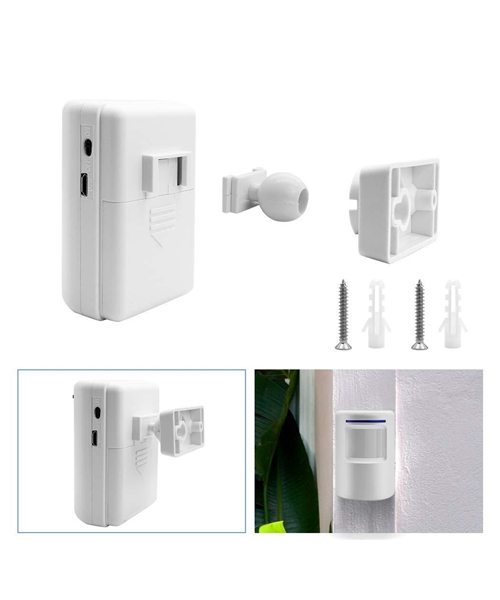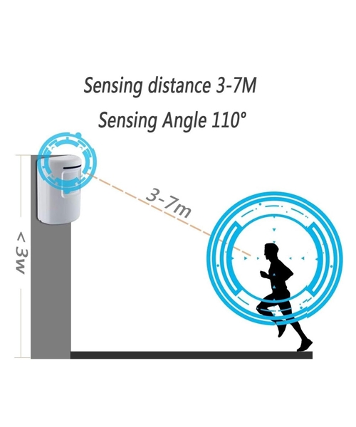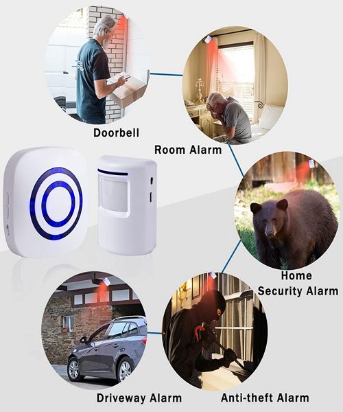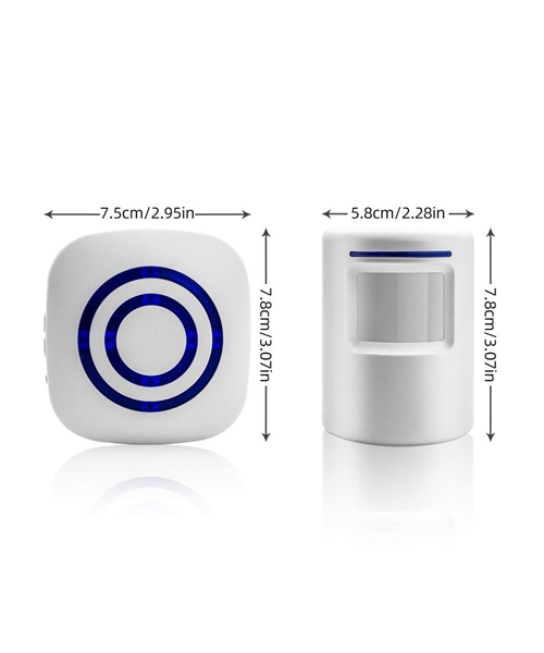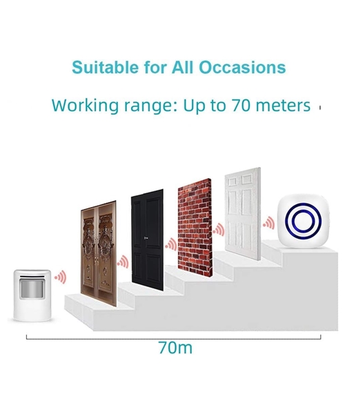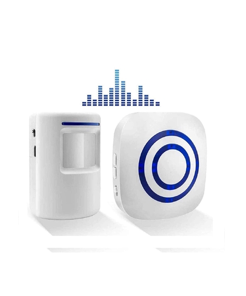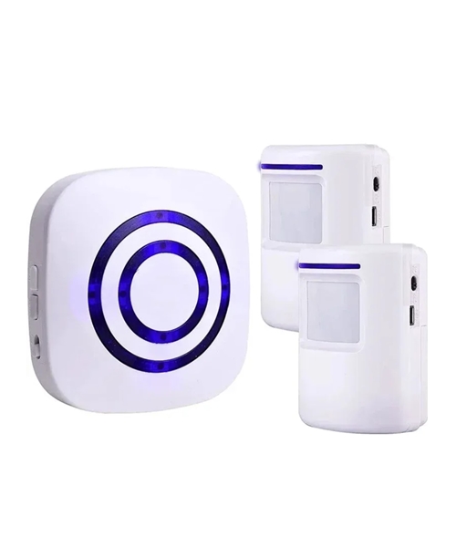 Ovaj bežični alarm vas obaveštava o bilo kom pokretu udaljenosti od 3 do 7 metara od senora. Unutrašnja jedinica ( javljač ) se ukljčuje u utičnicu. Senzor pokreta radi na 3 baterije od 1,5V. Najčešća primena za ulazna vrata kod kuće, lokale, kancelarije i poslovne objekte.